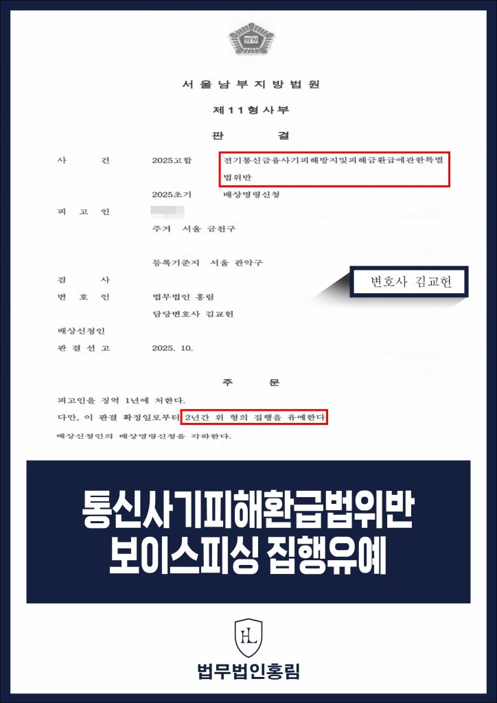 홍림의 변호인단은 통신사기피해환급법 위반 법리의 엄격한 해석을 통해 의뢰인에게 씌워진 억울한 혐의를 벗겨내는 데 주력합니다.