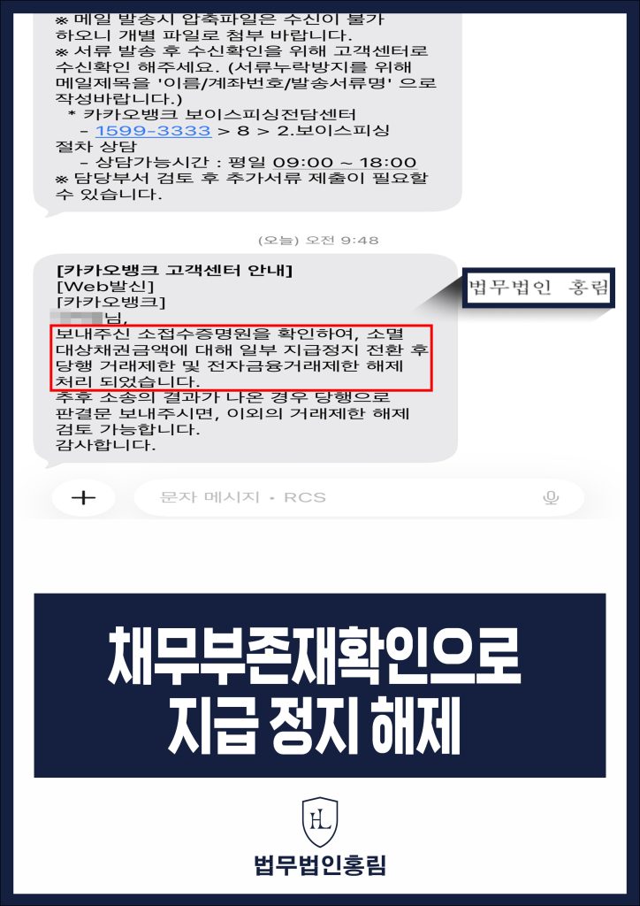 - 판결문을 근거로 은행에 지급정지 해제 요청