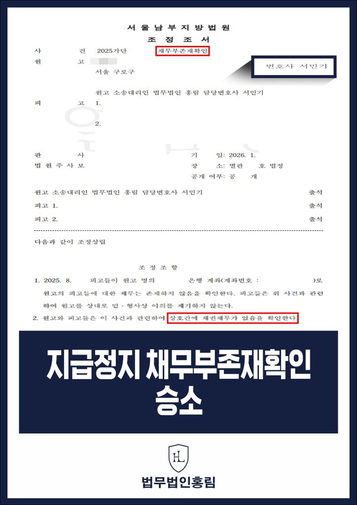 홍림의 실제 사례: 채무부존재 승소로 해제에 성공했습니다