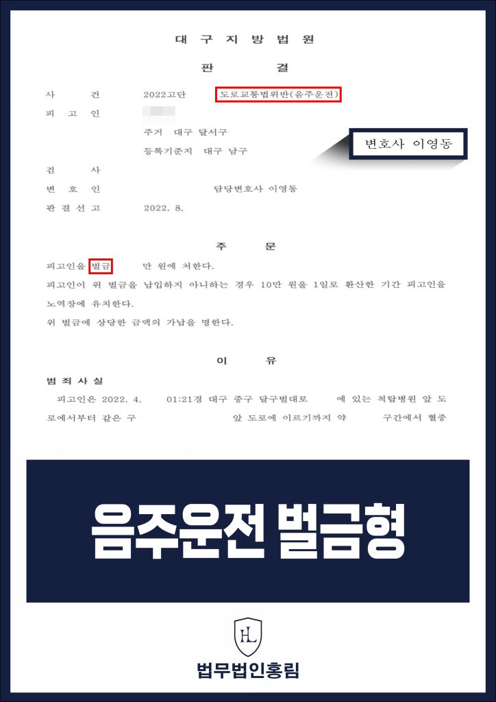 대구음주운전변호사 음주운전 선처 성공사례